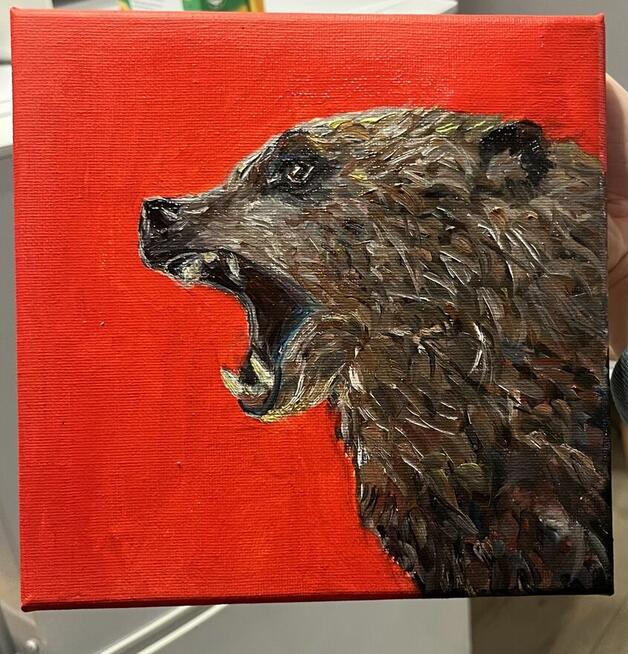 W tej pracy czuć niemal surowy podmuch dzikiej natury. Niedźwiedź, zatrzymany w chwili potężnego ryku, zdaje się ...